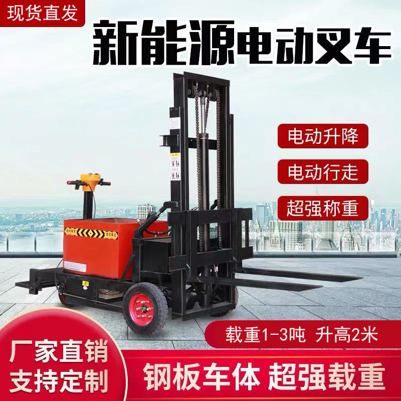 崇州市小型电动叉车1吨站驾式2吨液压升高铲车全自动仓储堆高车